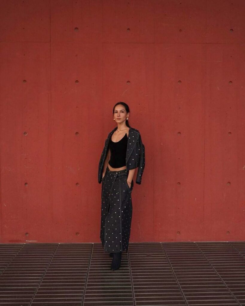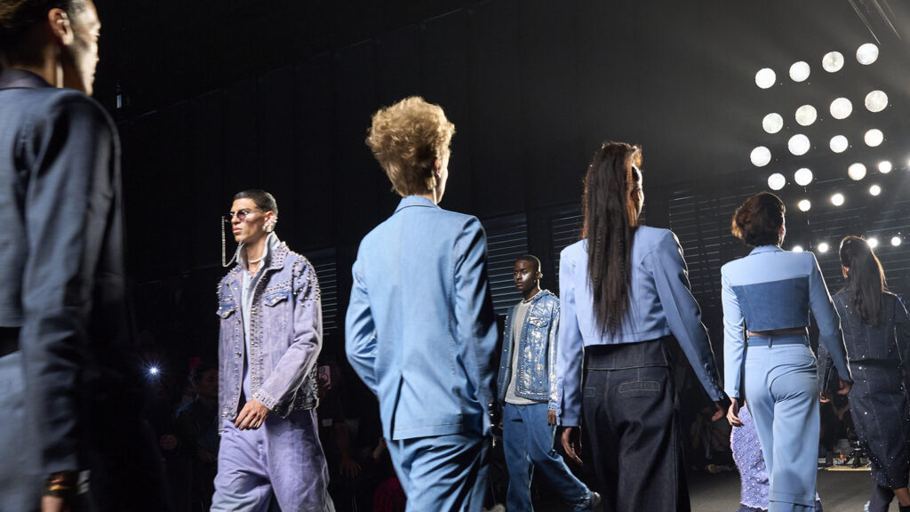 San Victorino debutó en la pasarela con una colección que exaltó la moda mayorista. Reinterpretó la energía del comercio madrugador con diseños inspirados en etiquetas, bolsas y prendas populares.