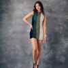 Un manifiesto de diseño consciente convertido en moda. Este mini vestido sin mangas de silueta recta está construido a partir de bloques de color en verde profundo, oliva y marfil, todos provenientes de sobrantes textiles resignificados.